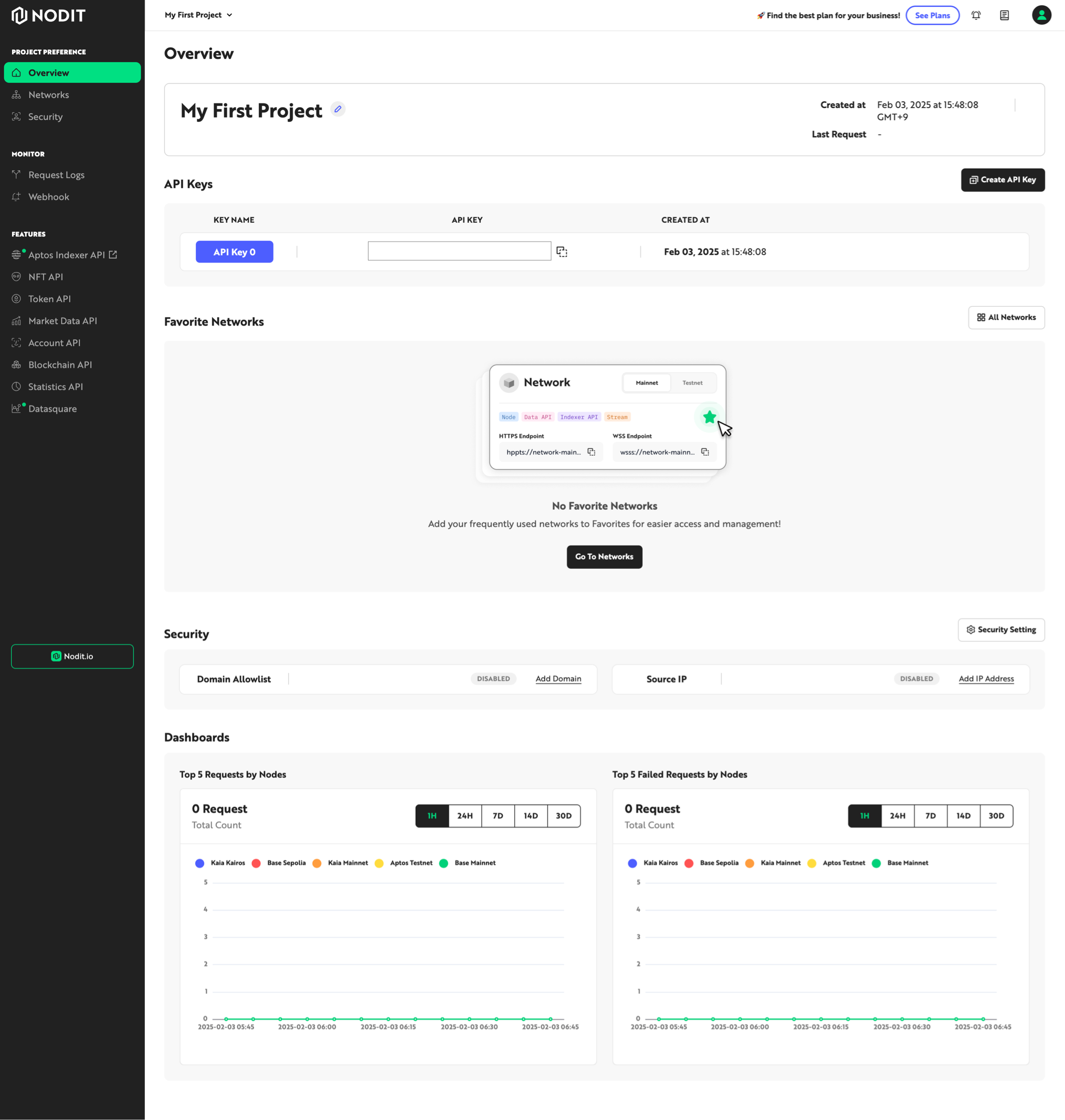 Ready to begin your Web3 project journey? Follow the guide below to check the information for your first project created in the Nodit console.